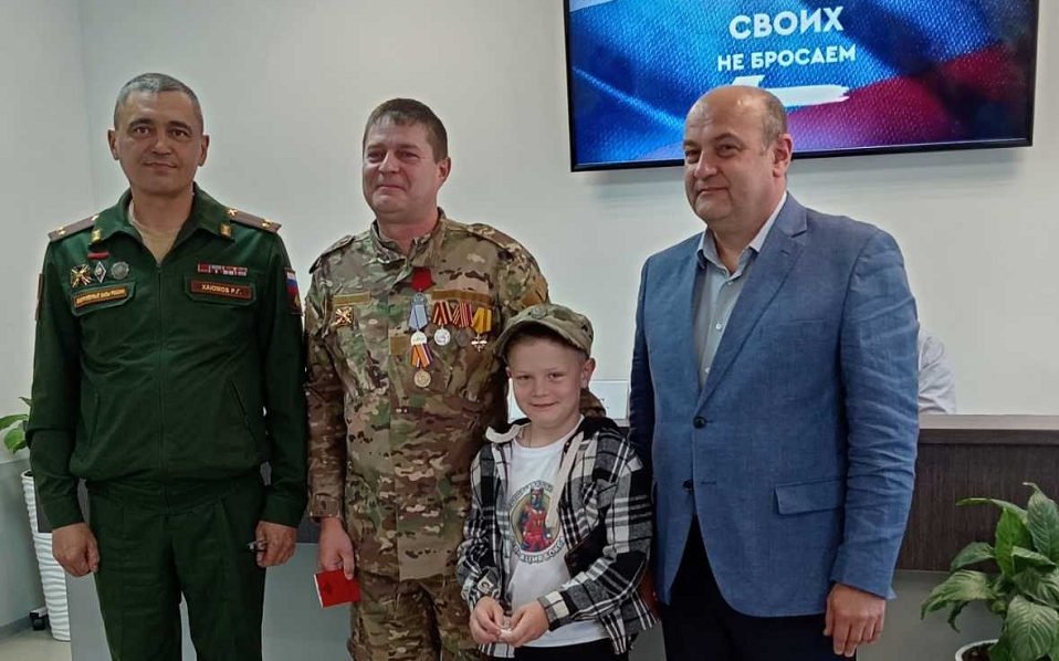 Медаль Министерства обороны Российской Федерации «Воин — доброволец» вручили Глава города Константин Поспелов и военный комиссар города Руслан Хаюмов.
